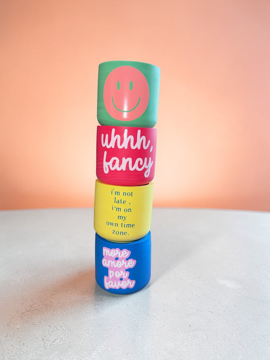 Statement Kerzen, bunte Kerzenbehälter