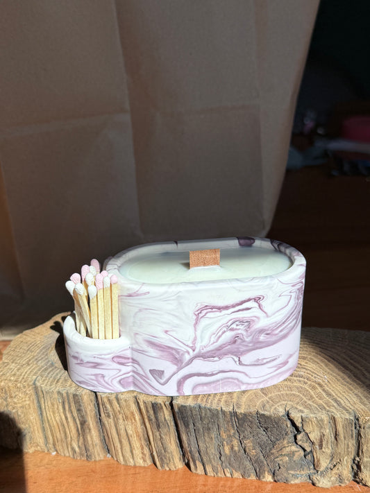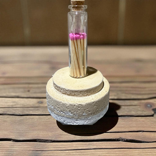 Handgefertigter Kerzenbehälter aus Jesin - mit Streichhölzern