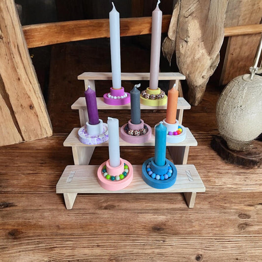 Handgefertigtes Kerzenhalter-Set mit Kerzen & Tablett aus Holz