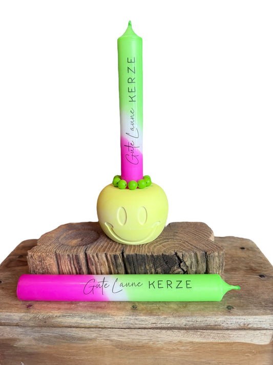 Gute Laune Kerze / Handgemacht aus Gießmasse / Trendige Deko / Gute Laune Deko / Geschenkidee / Stabkerzenhalter /Bunte Wohnaccessoires