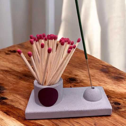 Räucherstäbchenhalter aus hochwertiger Gießmasse – Handgemachter Halter mit Zündholzbehälter – Minimalistische Deko – Meditationszubehör