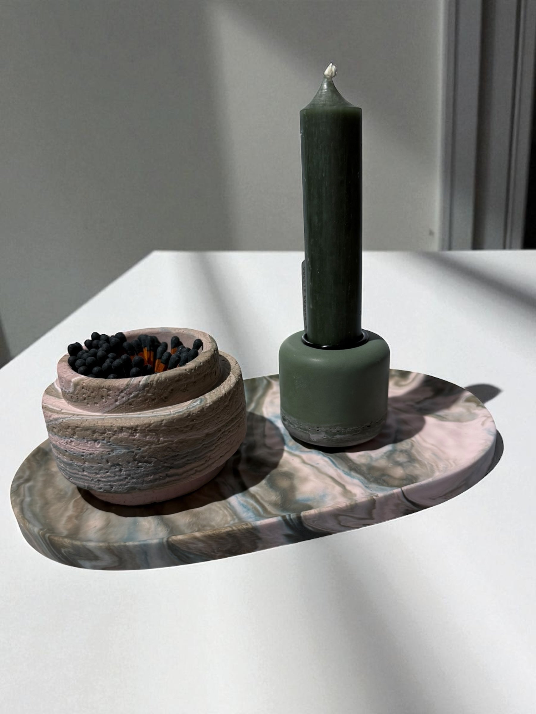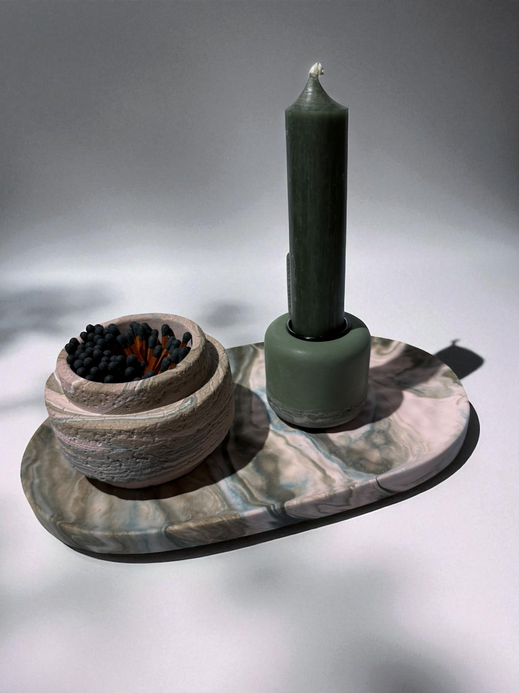 • Streichholzschale mit Zündfläche und Streichhölzer ( 50stück), diese kann auch als Teelichthalter verwendet werden
