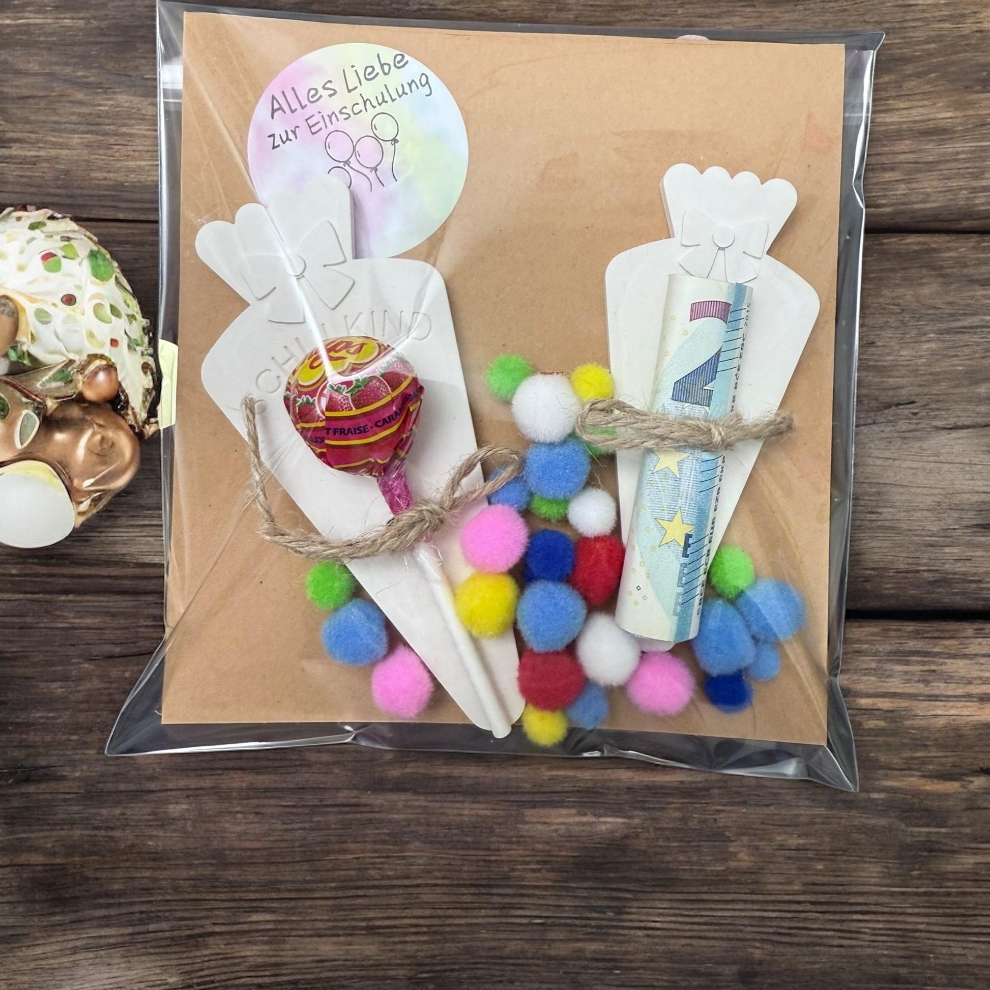 Dieser tollen kleine Mitbringsel oder Tischdeko perfekt zur Einschulung. Passend für Lolly , Schokoladentafel oder für ein bisschen Geld.