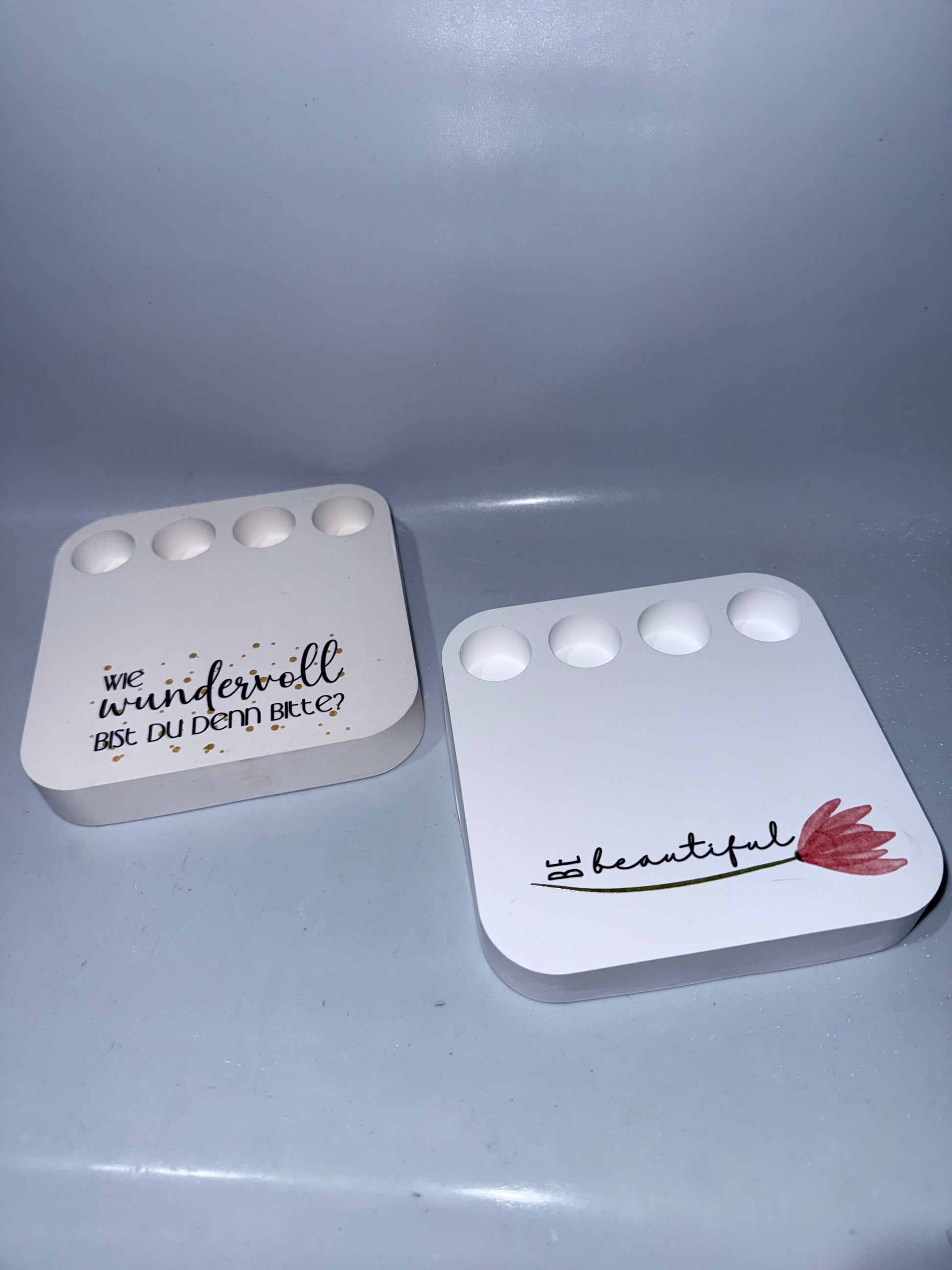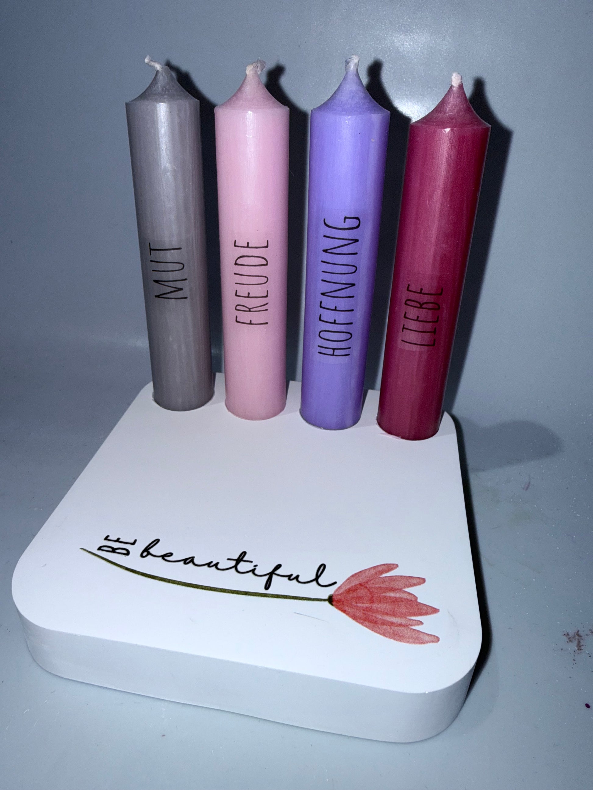 Diese wundervolle Set, kommt mit 4 Kerzen deiner Wahl.