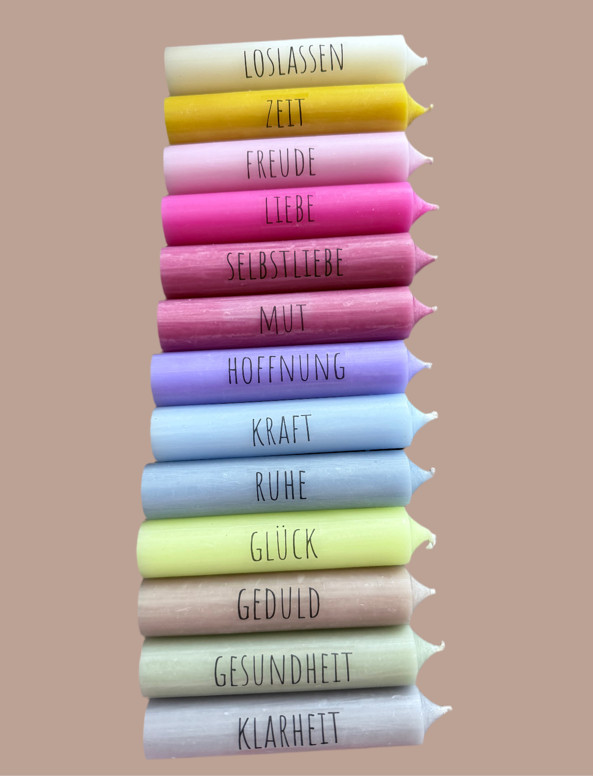 Die Kerzen können mit oder ohne Spruch ausgewählt werden.