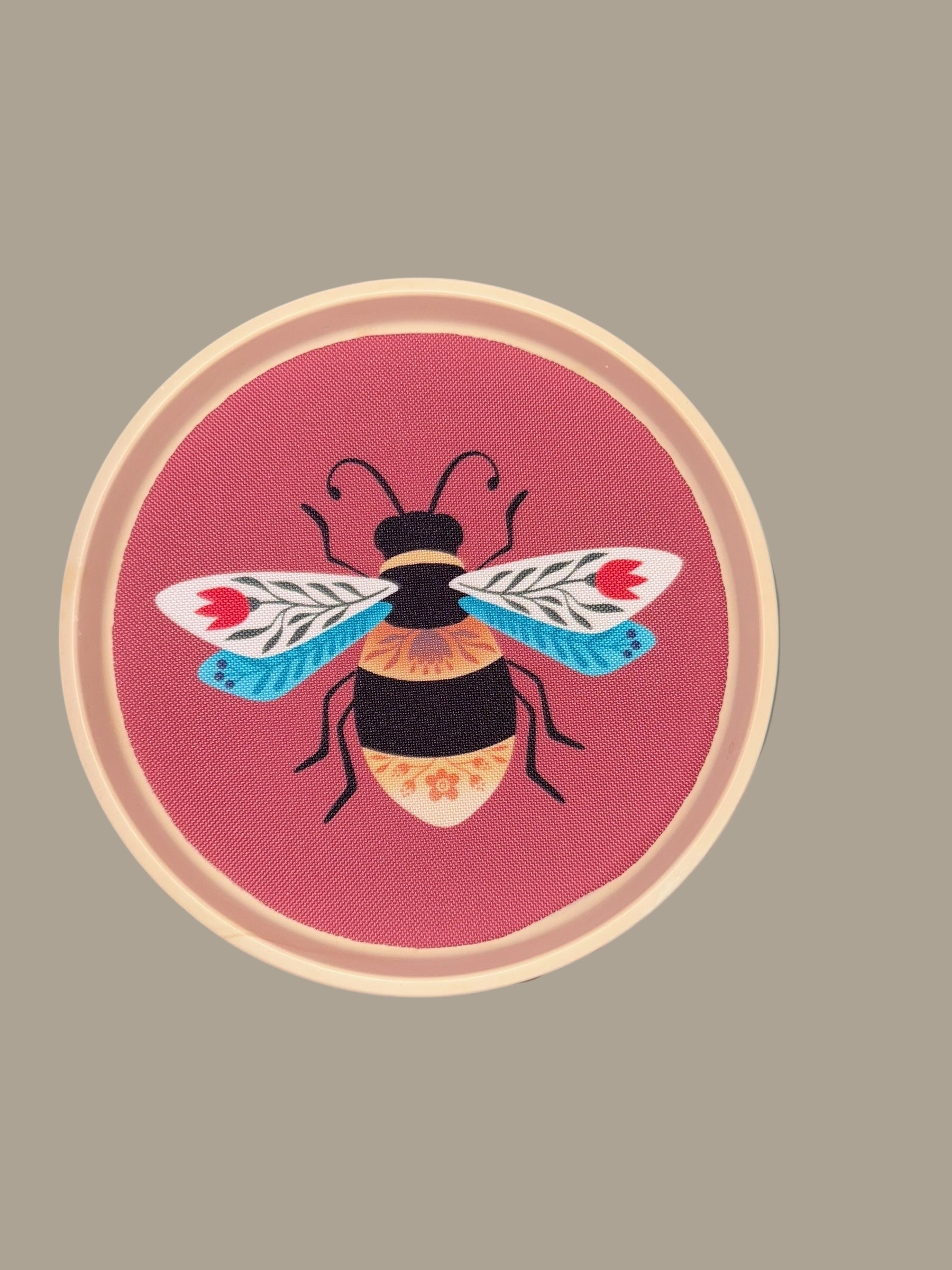 Handgemachter Wandteller aus Gießmasse – 17 cm – mit Stoffinlay | Pop-Art Deko | Dackel, Kamera, Blumen, Kaffee, Motte