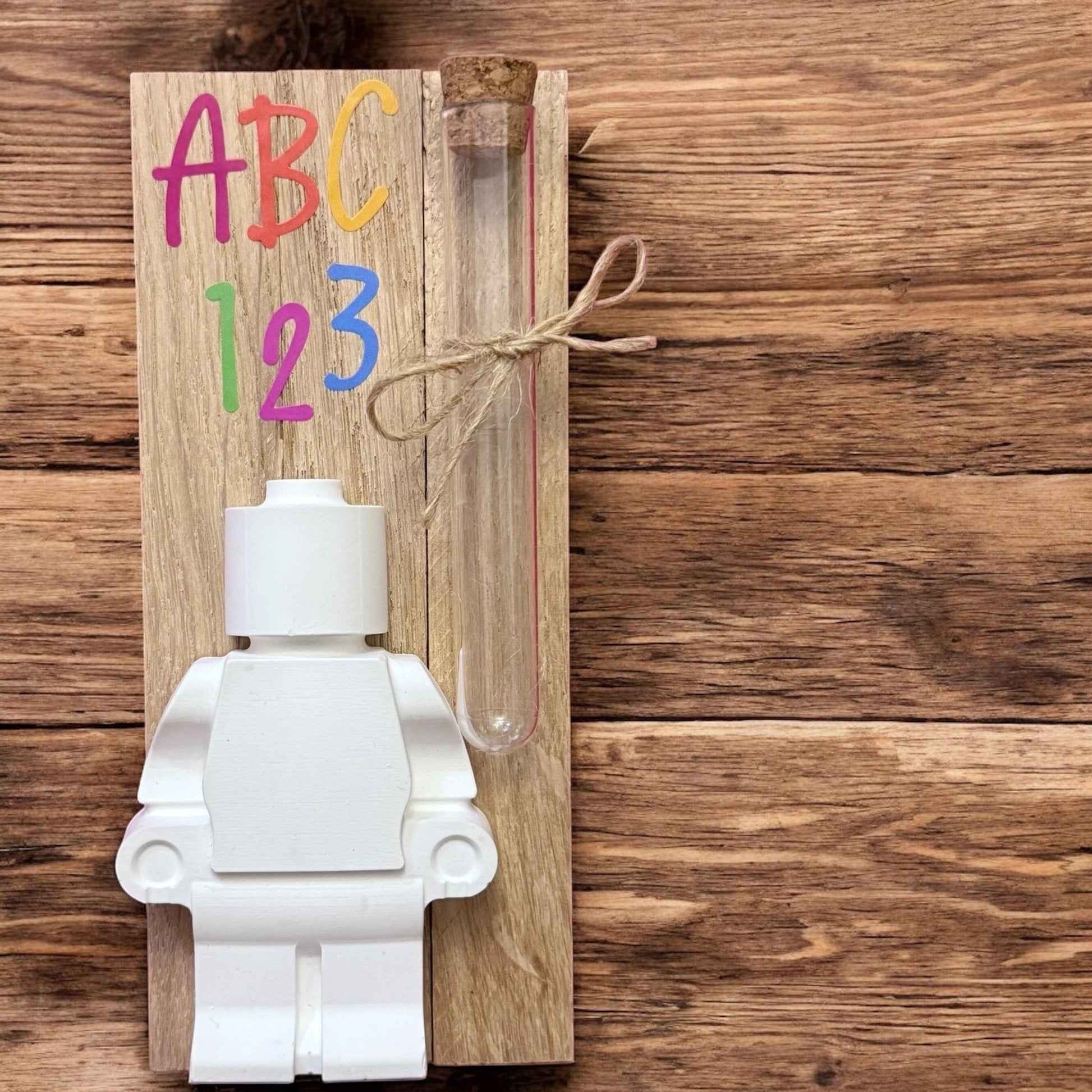 Männchen ( in wunschfarbe ) , Reagenzglas , Holzuntersetzer mit Spruch. dieser wird von Hand beklebt.