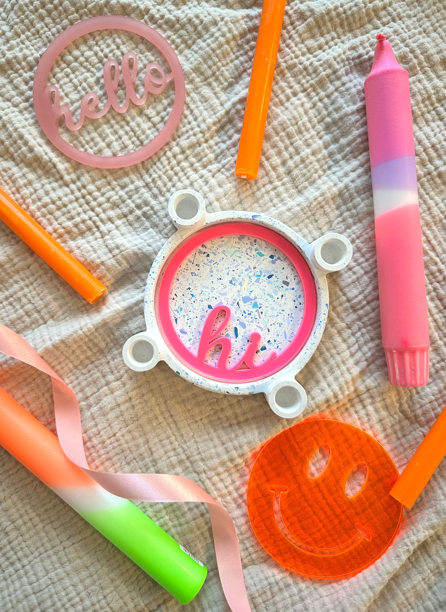 Handgefertigtes Kerzenhalter-Set mit Kerzen & austauschbarem Inlay