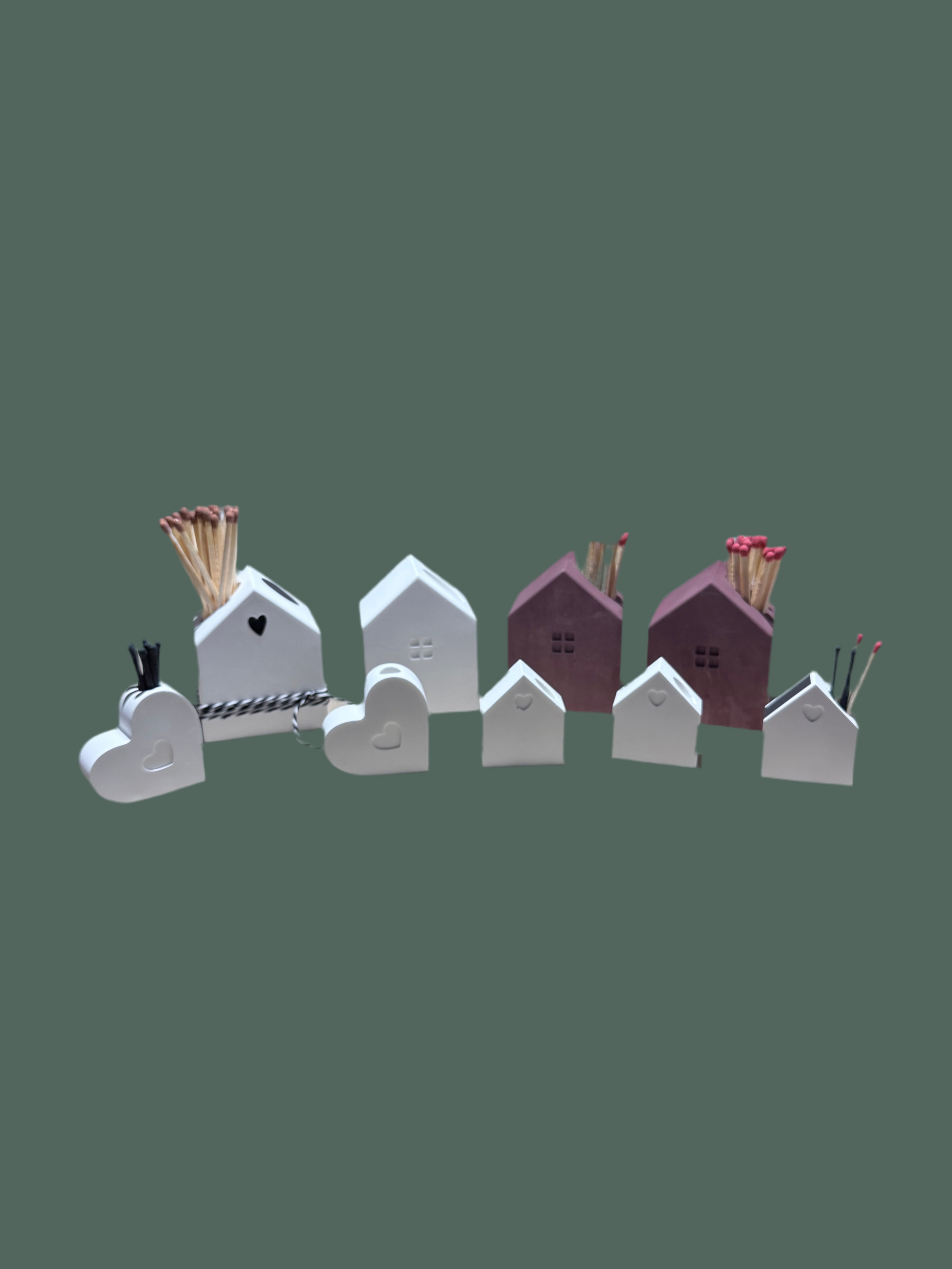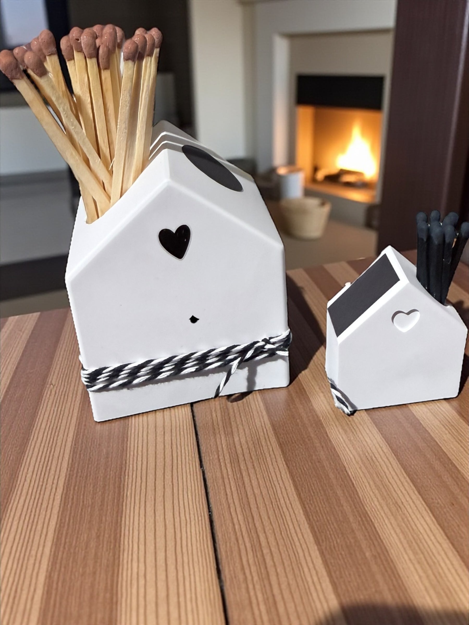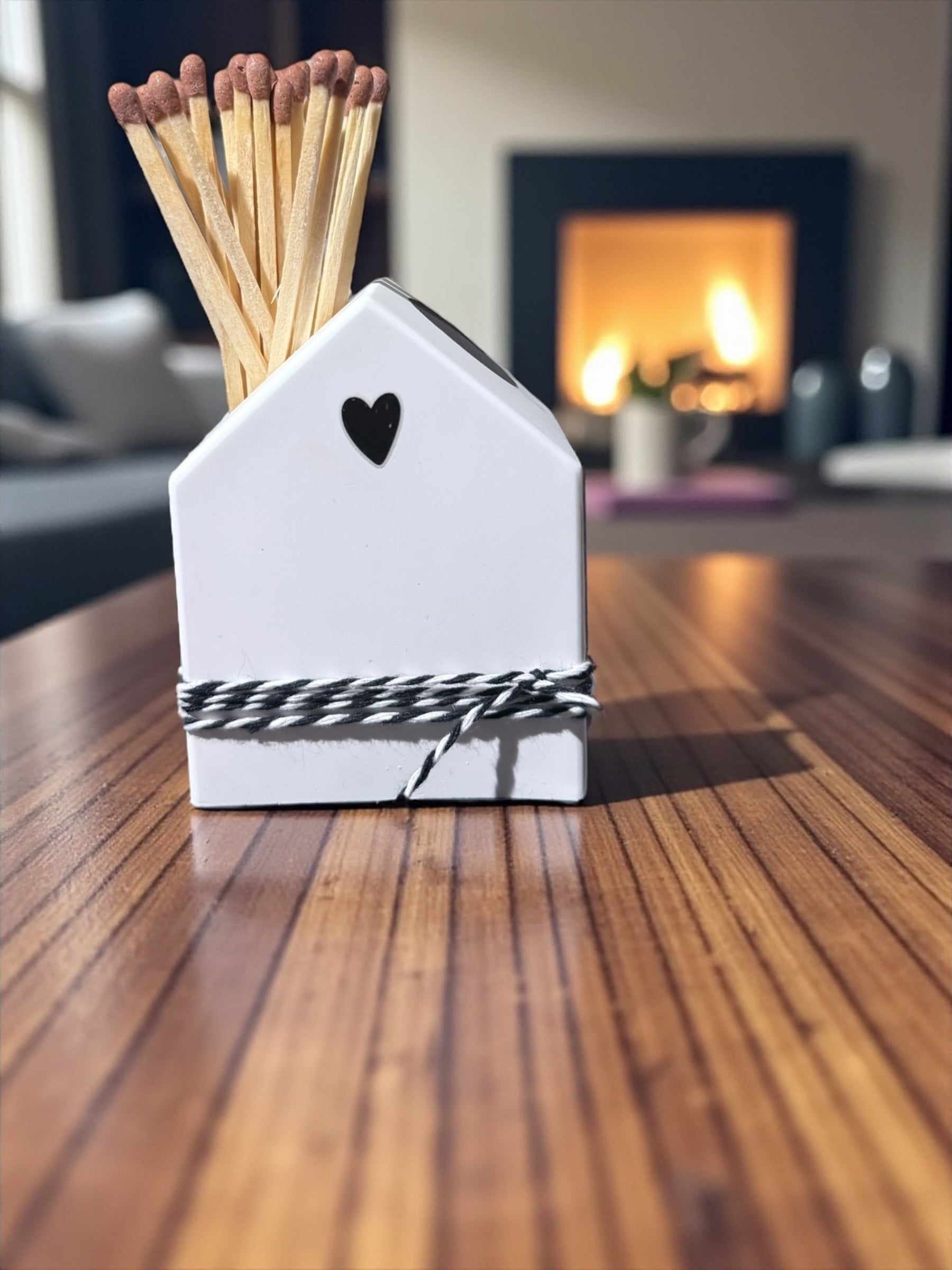Diese handgefertigten Streichholz-Häuser vereinen Funktionalität mit liebevollem Design. Gefertigt aus hochwertiger Gießmasse, bringen sie in jeder Größe einen Hauch von Gemütlichkeit und skandinavischem Charme in dein Zuhause. Perfekt für den Kamin, die Küche oder als dekoratives Highlight auf dem Tisch.