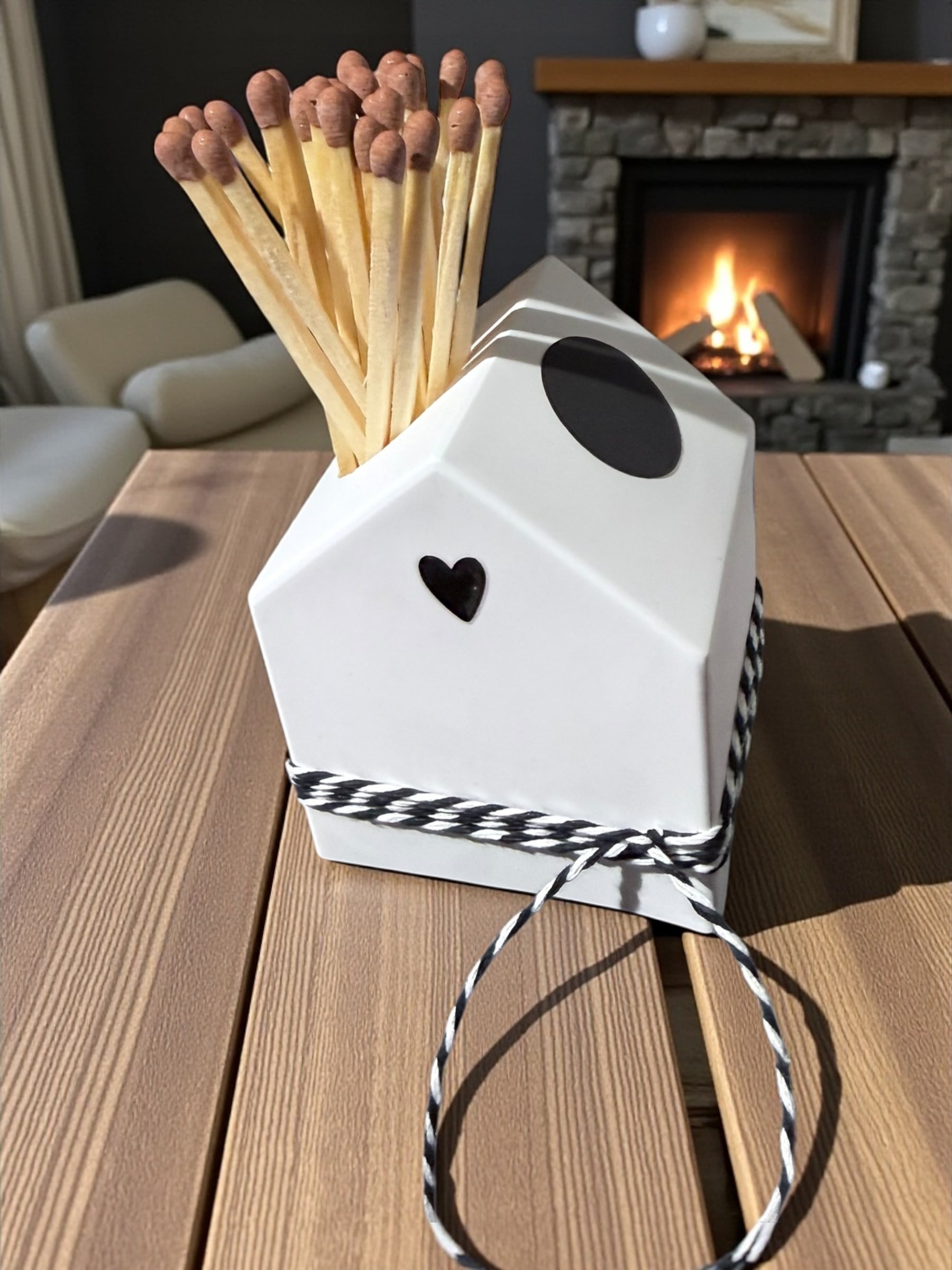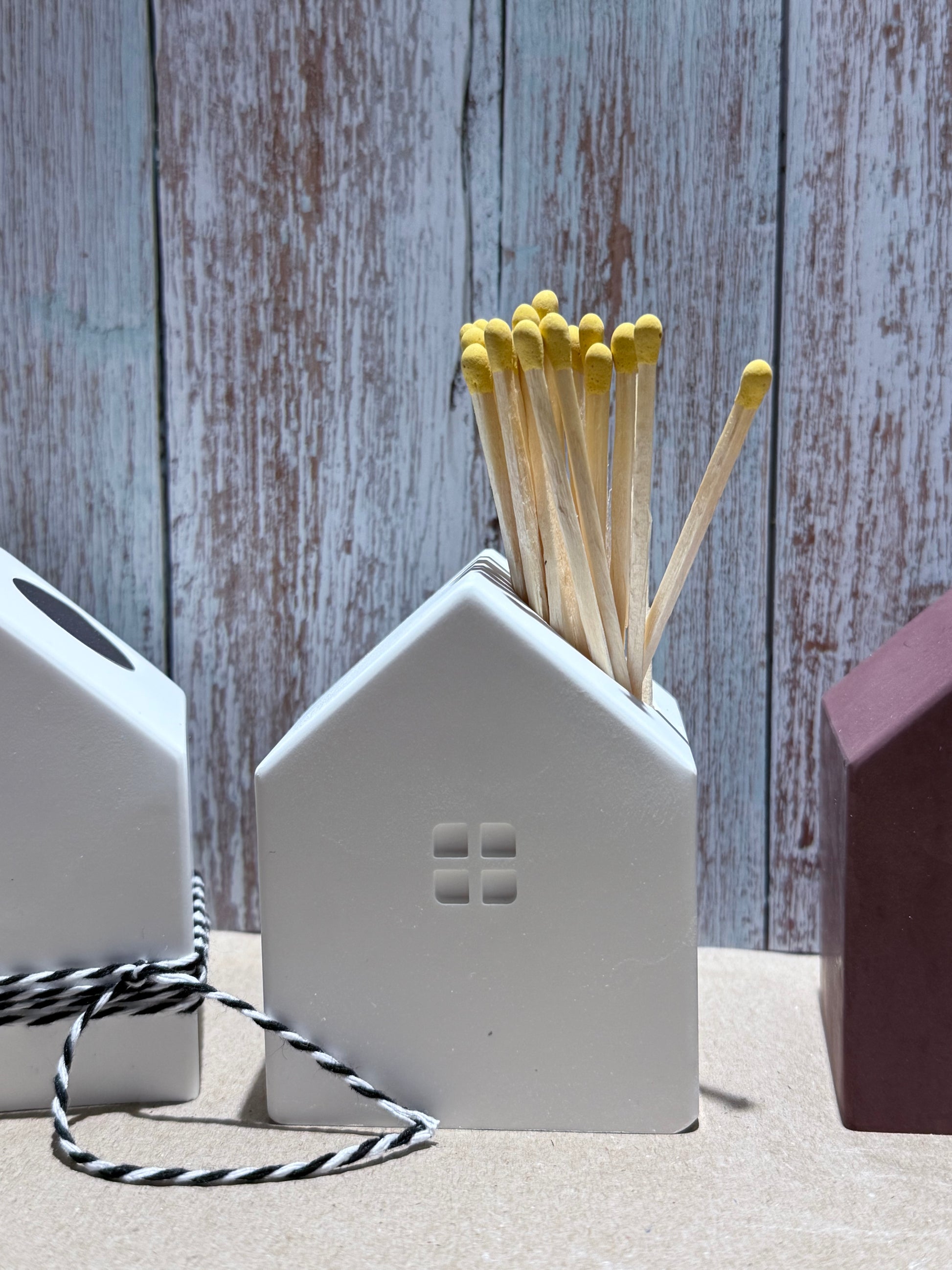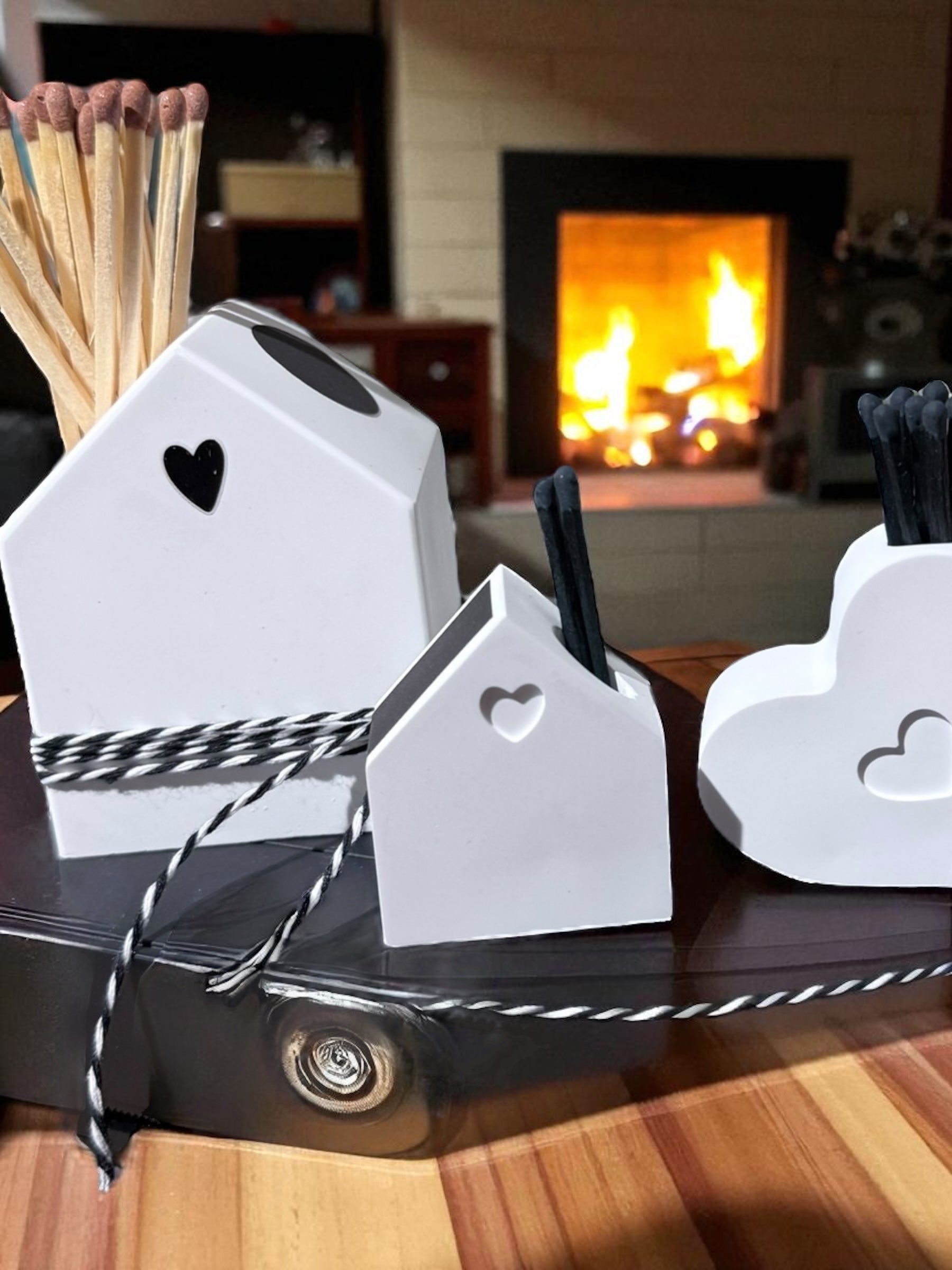 Diese handgefertigten Streichholz-Häuser vereinen Funktionalität mit liebevollem Design. Gefertigt aus hochwertiger Gießmasse, bringen sie in jeder Größe einen Hauch von Gemütlichkeit und skandinavischem Charme in dein Zuhause. Perfekt für den Kamin, die Küche oder als dekoratives Highlight auf dem Tisch.