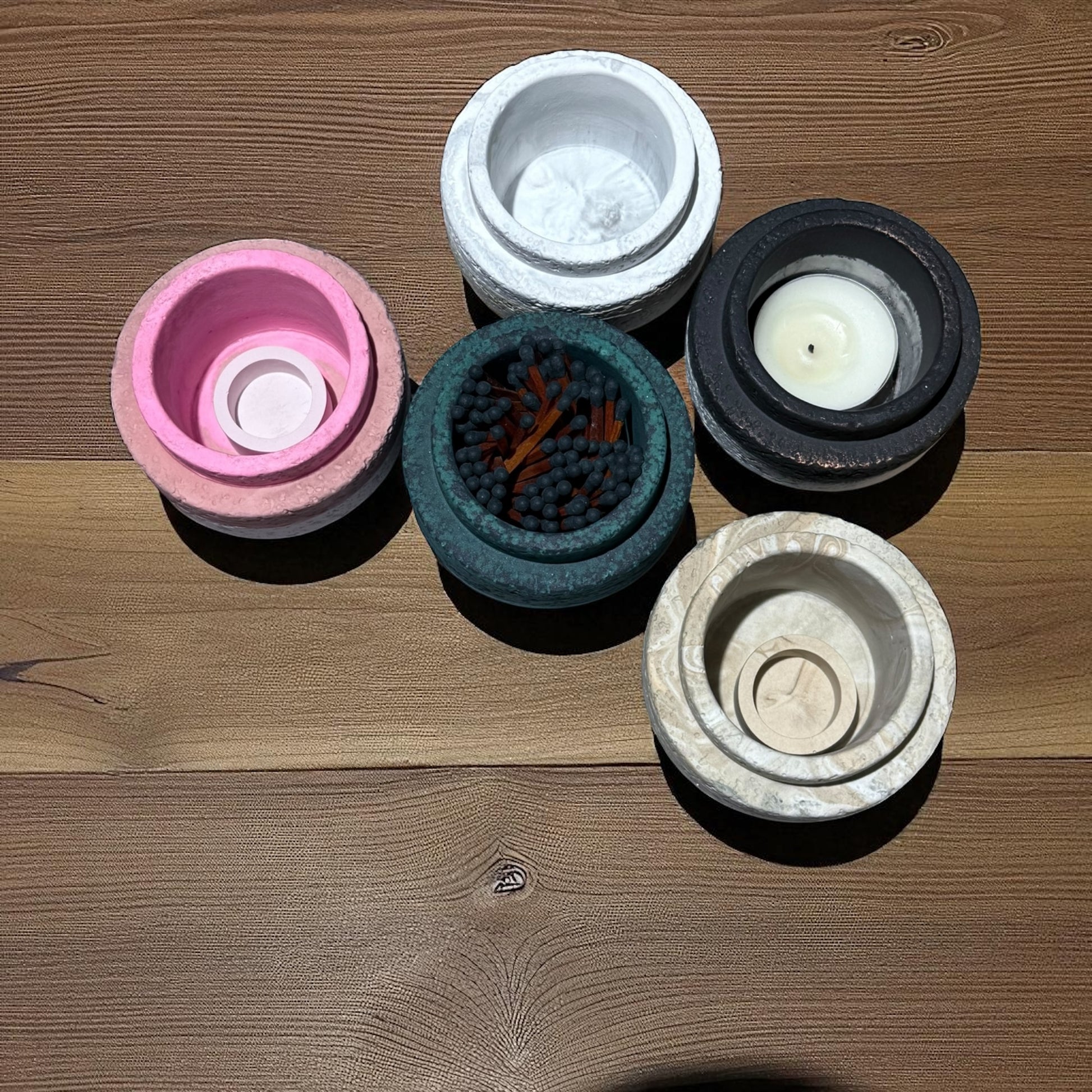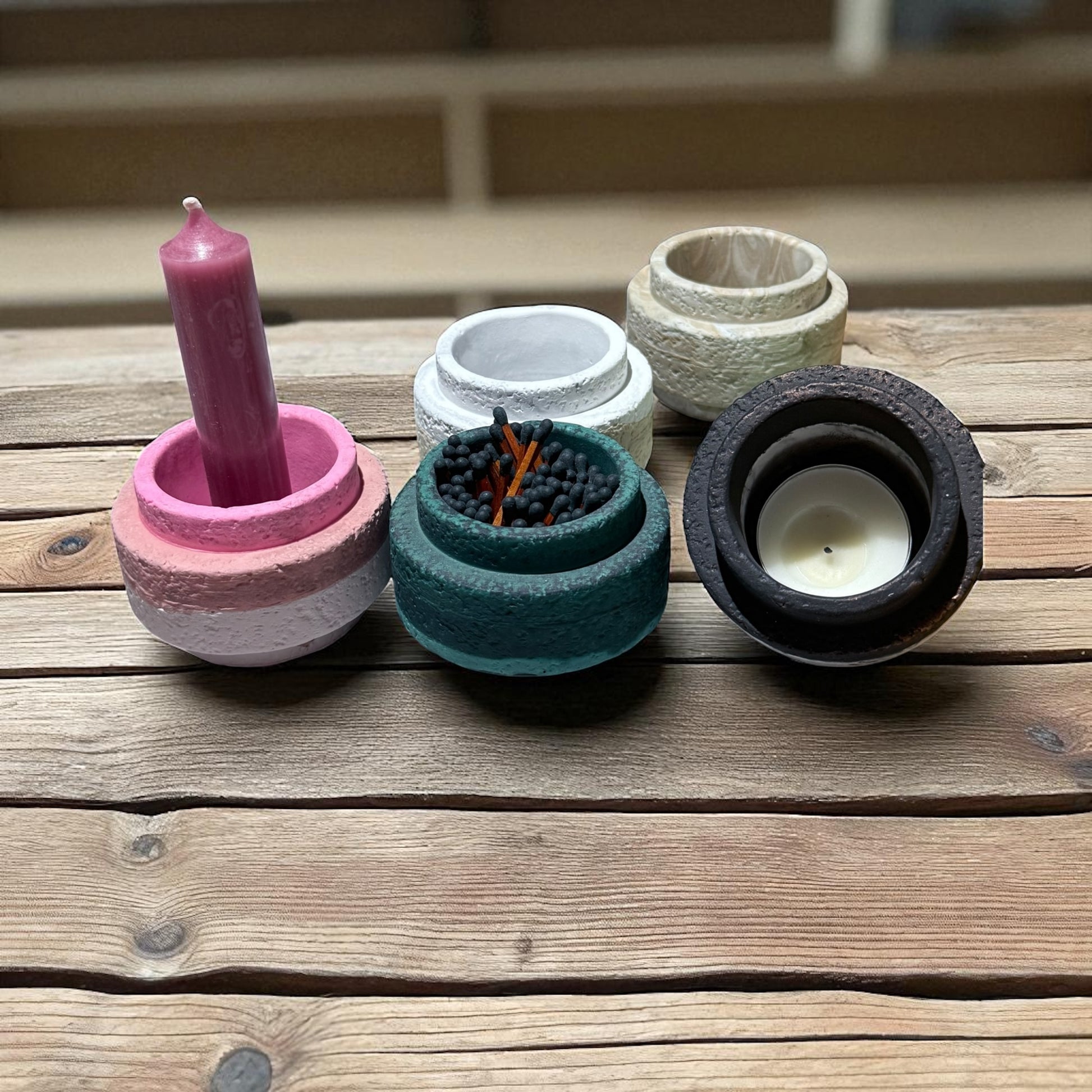 Teelichthalter | Streichholzhalter| Stabkerzenhalter - 3 in 1 Kerzenhalter in Lavastein Optik