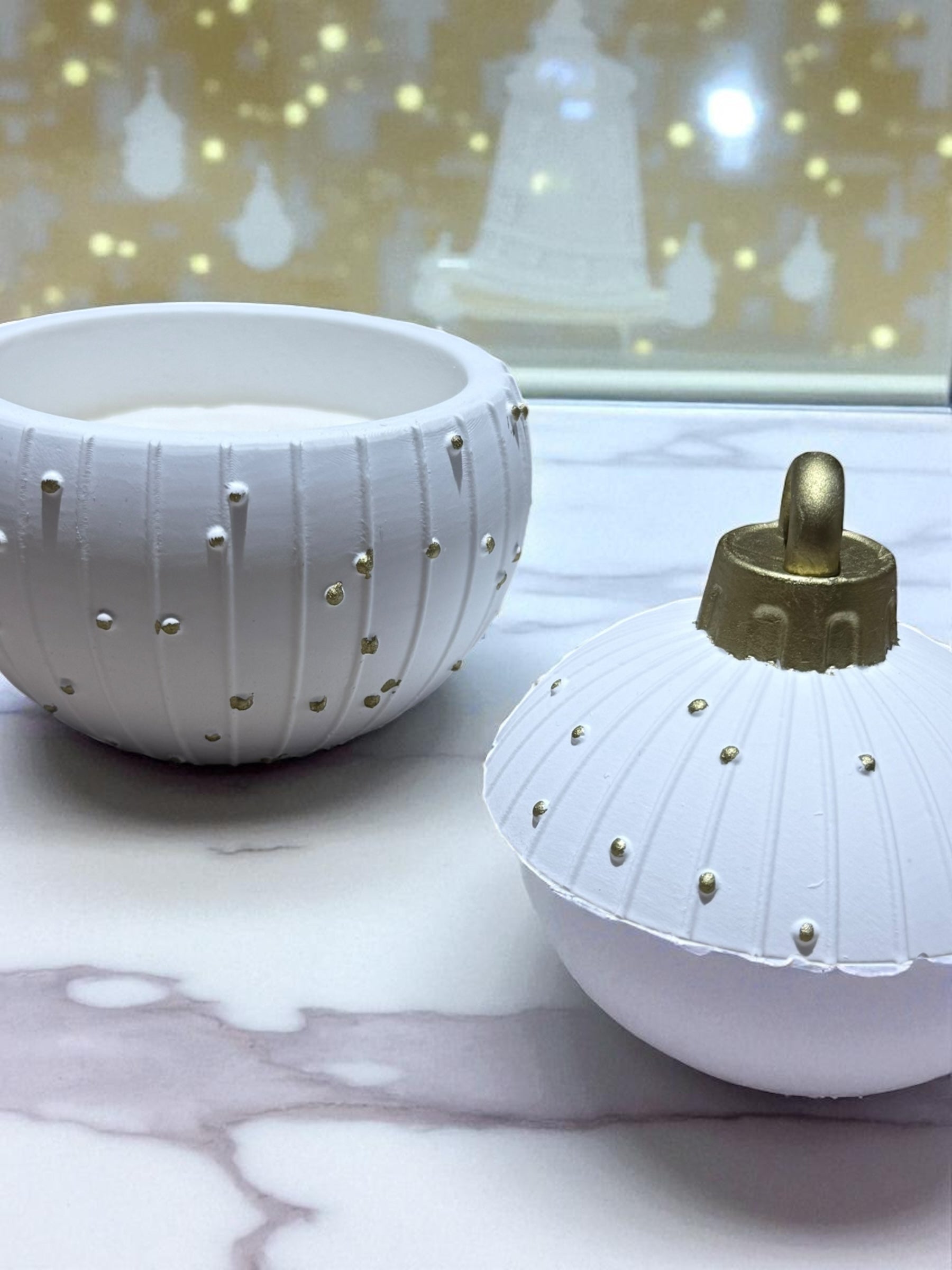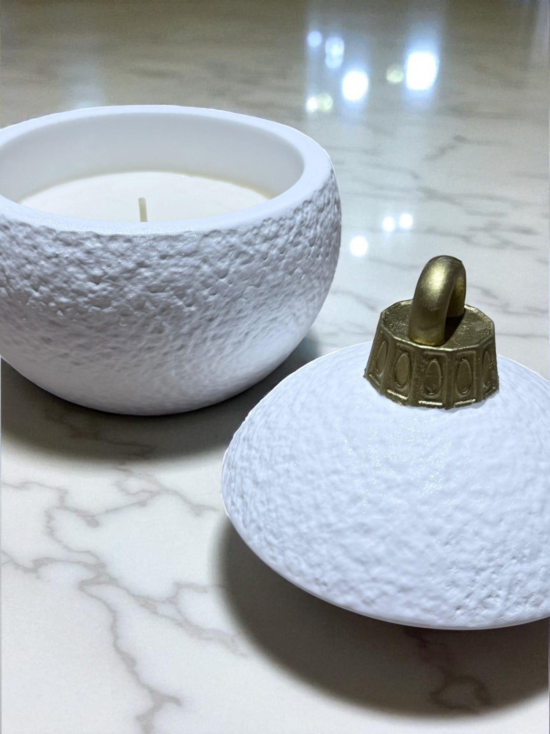 Diese wunderschöne Weihnachtskugel wird aus hochwertiger Gießmasse von Hand gefertigt und anschließend liebevoll mit Wachs befüllt – so entsteht eine einzigartige Kerze, die nicht nur Licht, sondern auch Stil in dein Zuhause bringt.